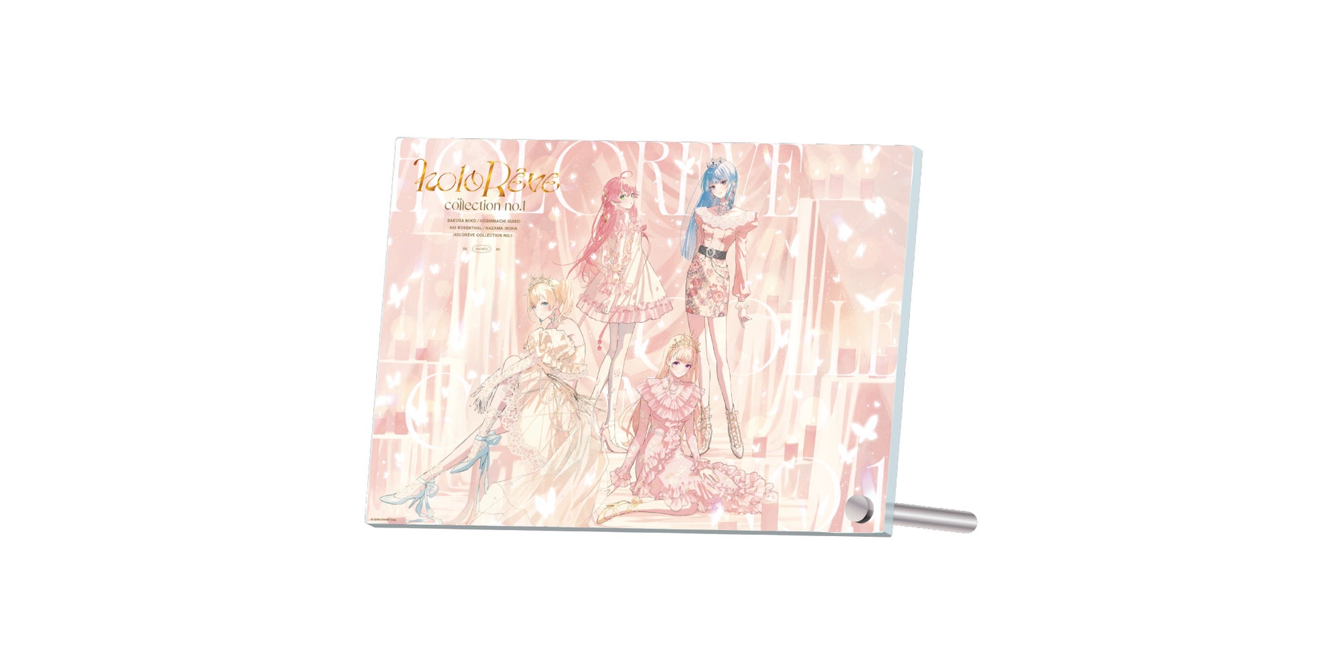 - holoRêve collection no.1、アクリルパネル、スタンド、缶バッジ、ネックレス