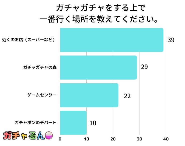 「ガチャガチャをする上で一番行く場所を教えてください。」とアンケート調査した結果、1位は『近くのお店(スーパーなど)』でした。