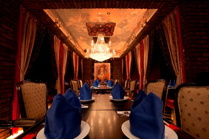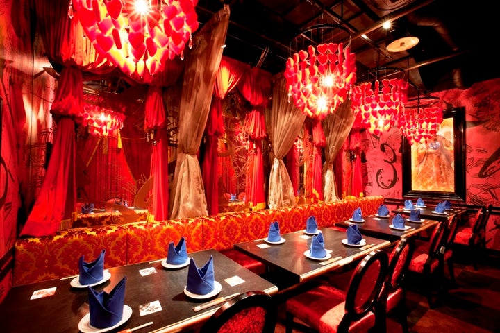 店内はハートの女王の城をイメージし、150席を提供しており、ランチとディナーを楽しめます。