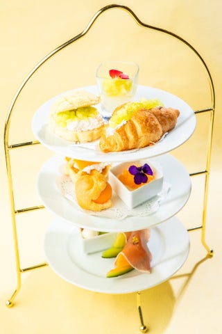 - アフタヌーンティープラン、特製メロンケーキ、海老のペペロンチーノ、ローストビーフ