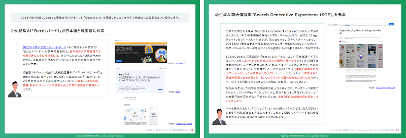 レポートでは、Googleの新しい指標「INP」や「About this image」機能の導入、生成型AIと生成AI融合型検索についてなど、注目のトピックを取り上げています。