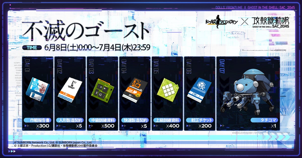株式会社サンボーンジャパンは、『ドールズフロントライン』と『攻殻機動隊 SAC_2045』のコラボイベントを開催します。
