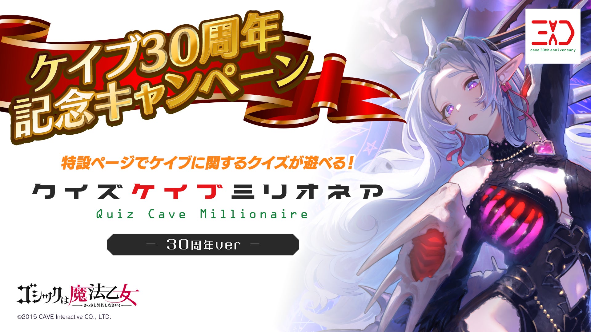 さらに、ケイブの創立30周年を記念したブラウザゲーム「クイズケイブミリオネア-30周年ver-」も公開されました。