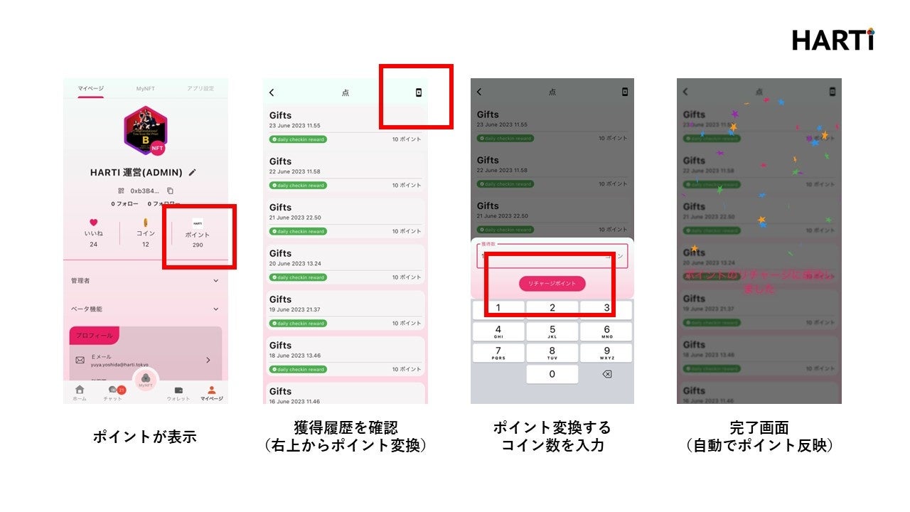 さらに、「HARTiポイント」は「HARTiコイン」と交換することも可能です。