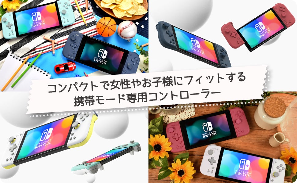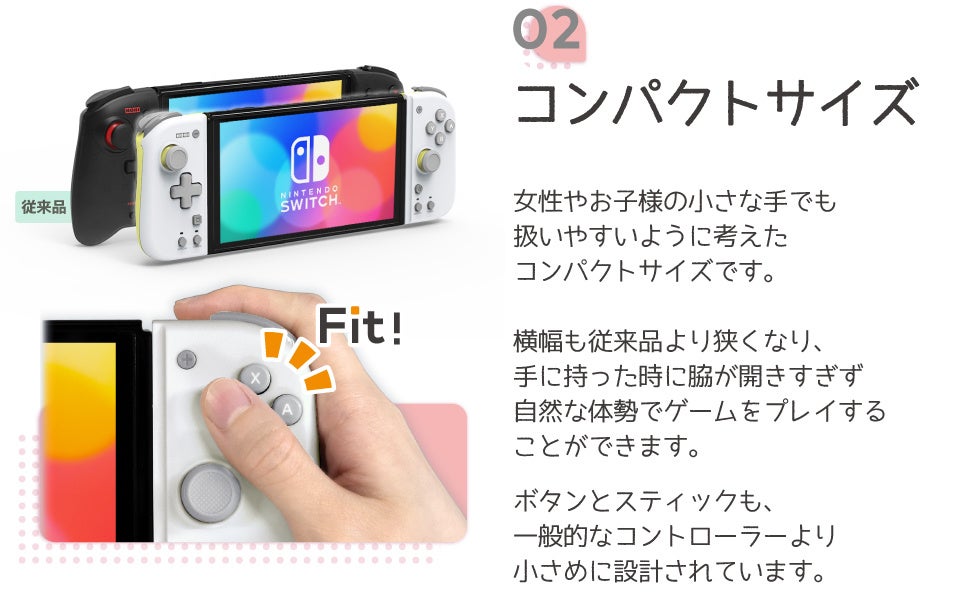 - 「グリップコントローラー Fit for Nintendo Switch」は、携帯モード専用で小さく持ちやすいコントローラー。