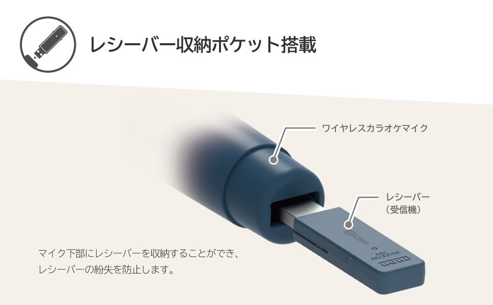 また、マイク下部にはレシーバー収納ポケットがあり、紛失を防ぐことができます。