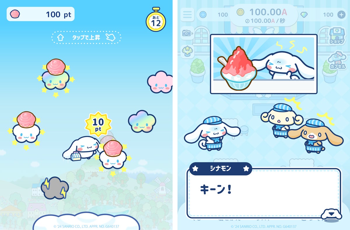 シナモロールやそのお友達と一緒に、雲の上にある「カフェ・シナモン」を経営するシミュレーションゲームです。