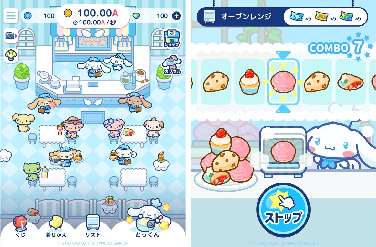 - シナモロールやお友達と一緒に「カフェシナモン」を経営するシミュレーションゲーム