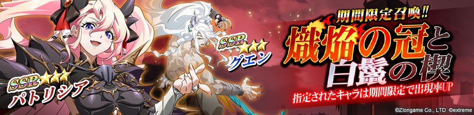 - 期間限定召喚『熾焔の冠と白鬣の楔』でSSRパトリシアとSSRグエンの出現確率アップ