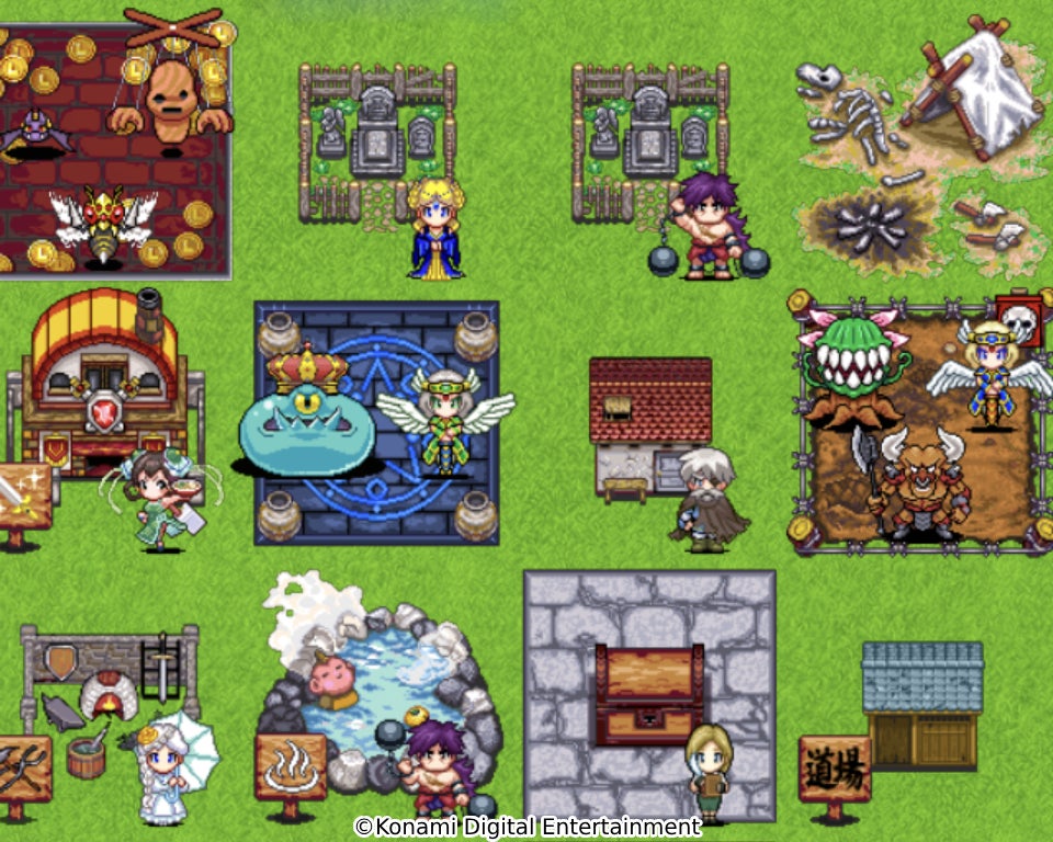 - モンスターや島民を配置して、勇者たちのレベルアップをサポートしよう。