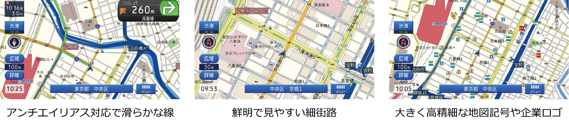 さらに地図記号や企業ロゴなども、大きく高精細なマークで表示することで、地図の視認性を向上しています。