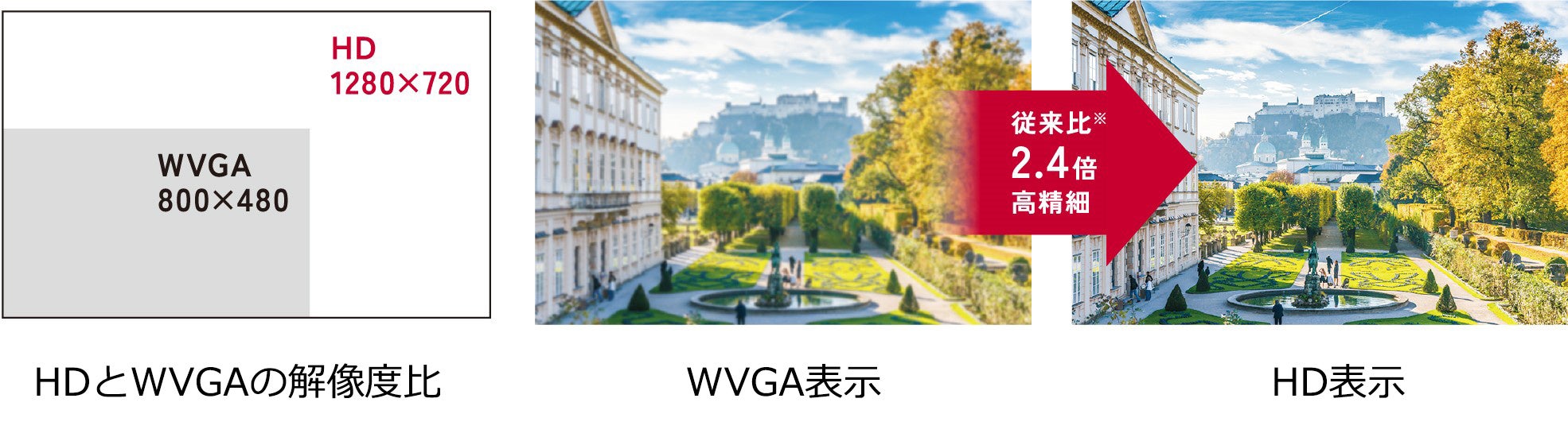 1280×720の高精細HD画質でアイコンも文字もクッキリと見やすく描画。