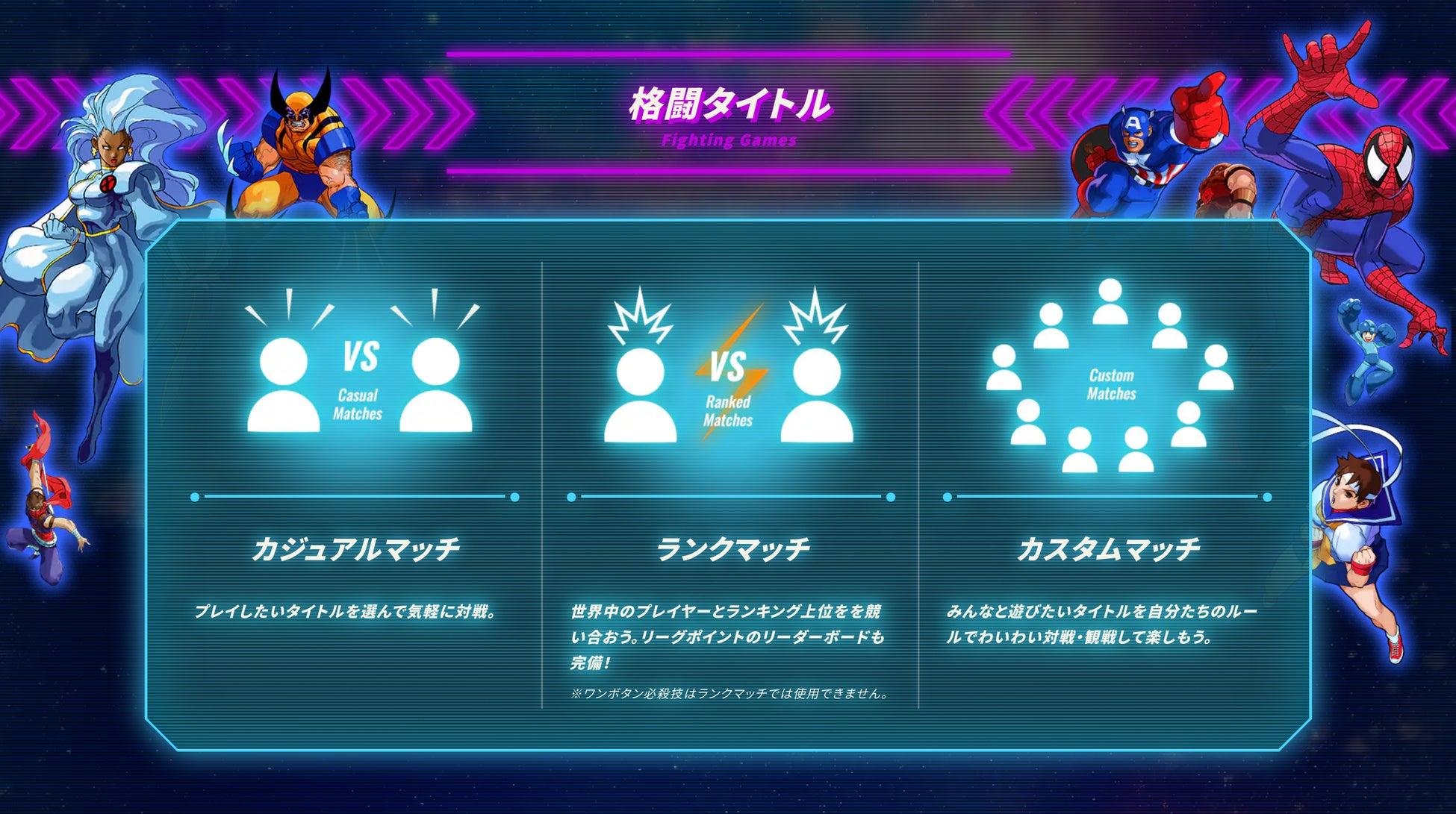 - MARVELとCAPCOMの格闘/アクションゲーム7タイトルを収録