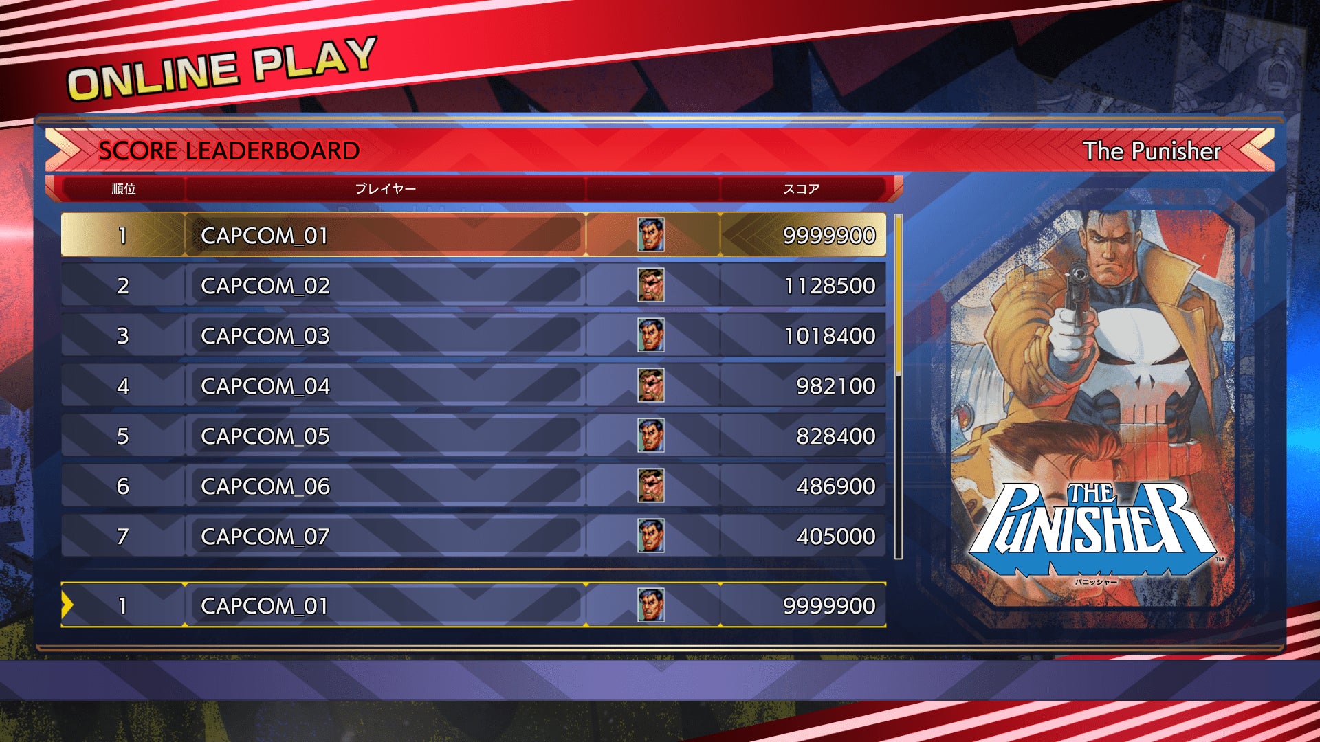 - エックス・メン チルドレン オブ ジ アトム (X-MEN CHILDREN OF THE ATOM)、マーヴル・スーパーヒーローズ (MARVEL SUPER HEROES)、エックスメン バーサス ストリートファイター (X-MEN VS. STREET FIGHTER)、マーヴル・スーパーヒーローズ VS. ストリートファイター (MARVEL SUPER HEROES VS. STREET FIGHTER)、マーヴル バーサス カプコン クラッシュ オブ スーパーヒーローズ (MARVEL VS. CAPCOM CLASH OF SUPER HEROES)、マーヴル バーサス カプコン ツー ニューエイジ オブ ヒーローズ (MARVEL VS. CAPCOM 2 NEW AGE OF HEROES)、パニッシャー