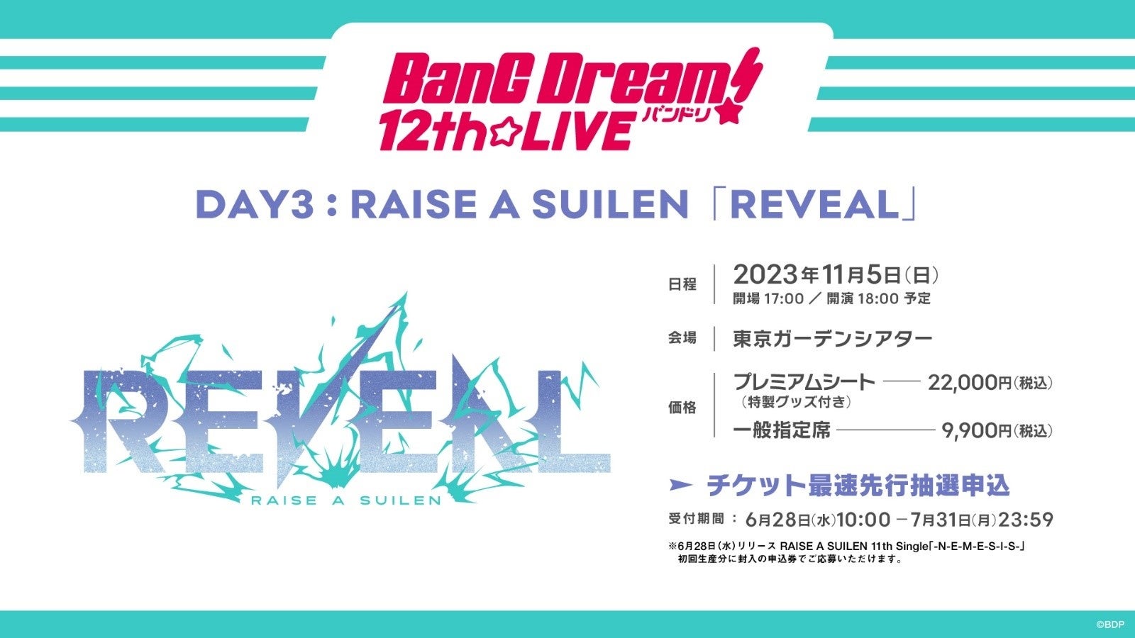 ・BanG Dream! 12th☆LIVE DAY3 : RAISE A SUILEN「REVEAL」最速先行抽選申込券