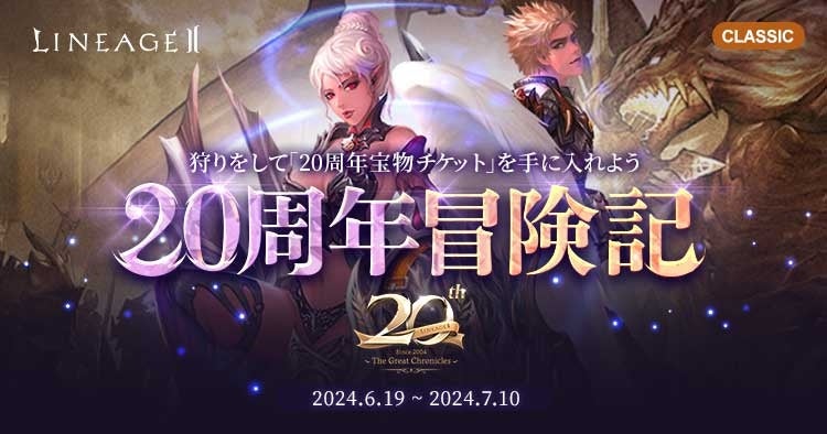 『リネージュ2』は、2024年6月19日(水)より、ライブサービス/クラシックサービス/アデンサービスで20周年イベントを開催します。