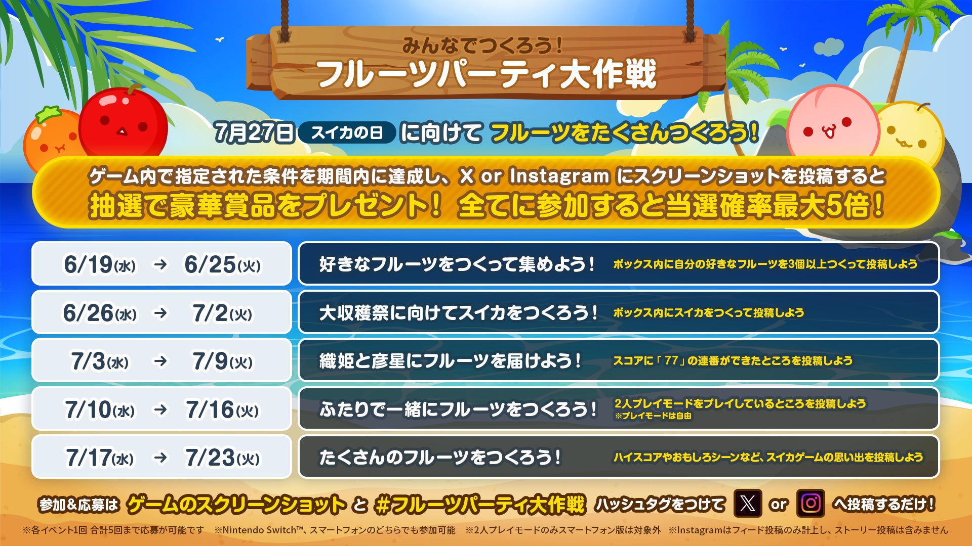 - SNS連動ゲームイベント「フルーツパーティ大作戦」も開催