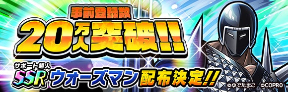 事前登録キャンペーンは20万人を突破し、限定サポート超人SSR【氷の心】ウォーズマンが配布されます。