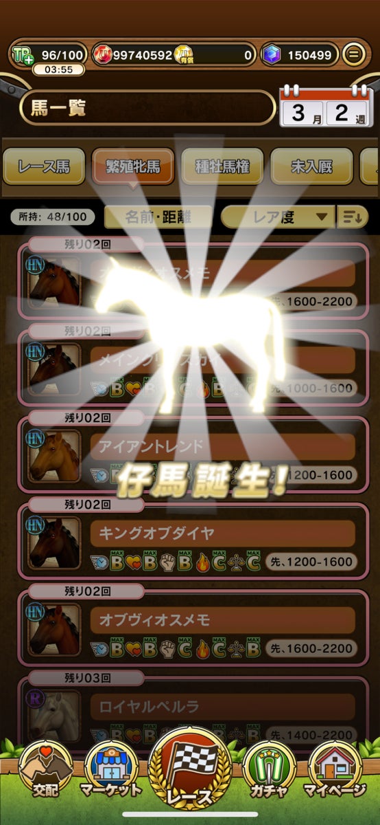 育成した競走馬は、レースで勝利することでゲーム内通貨やアイテムを獲得できるだけでなく、交配やトレーディングでも報酬を得られます。