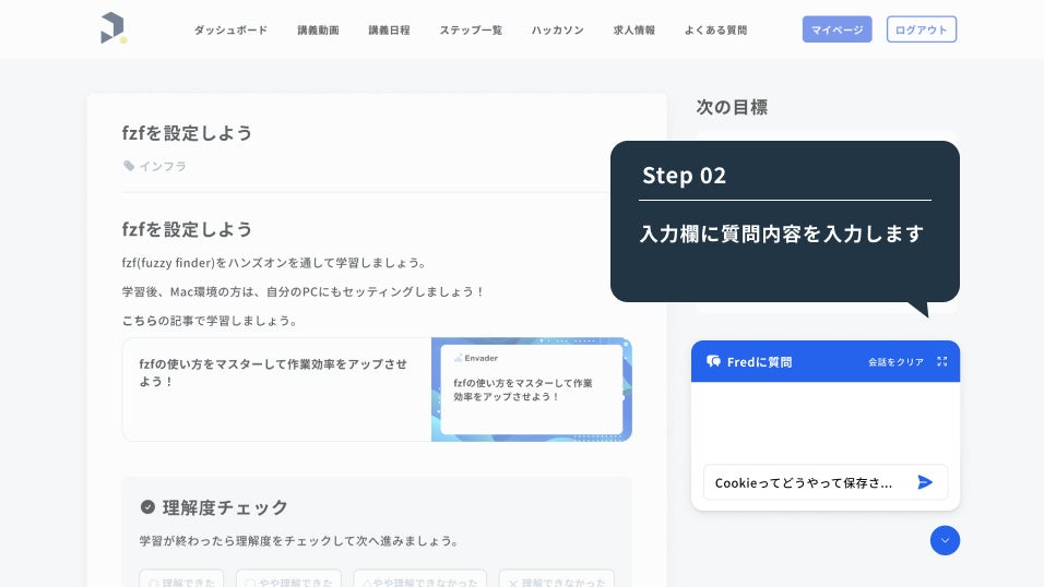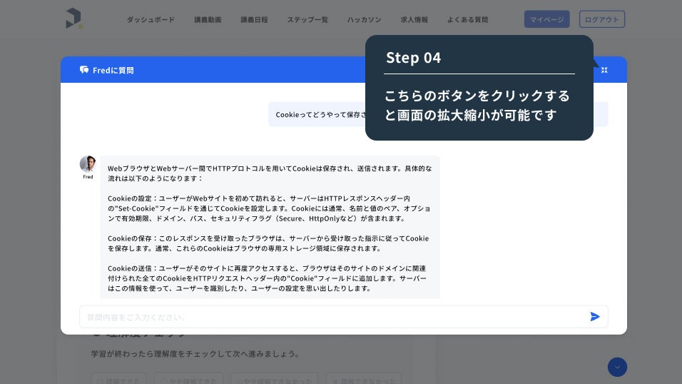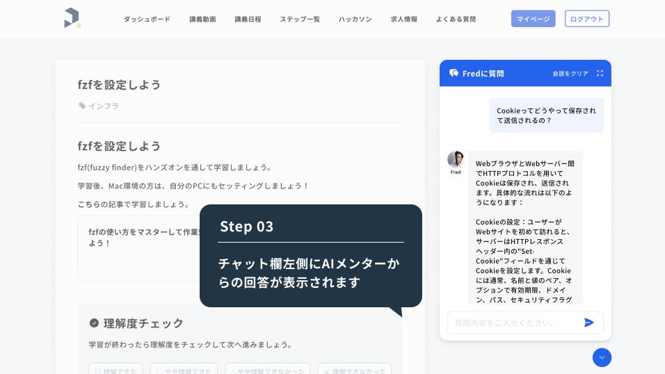受講生はAIメンターに気軽に質問することができ、個別のサポートを受けることができます。