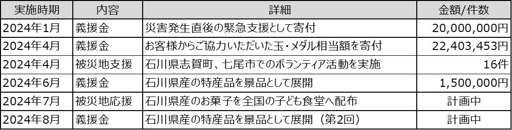 石川県能登半島で発生した地震の被災地支援として、株式会社ダイナムは、石川県の特産品を用いた景品企画を実施しています。