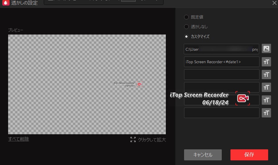 透かしの位置は、録画前にプレビューで確認できるので、安心して設定できます。