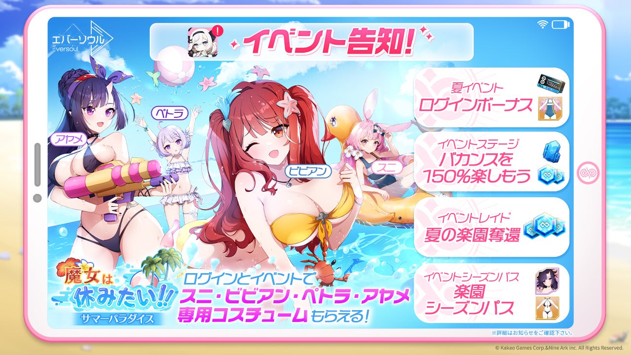 - 『エバーソウル』の夏イベント「魔女は休みたい!サマーパラダイス」で「ペトラ」のピックアップ召喚が開始。