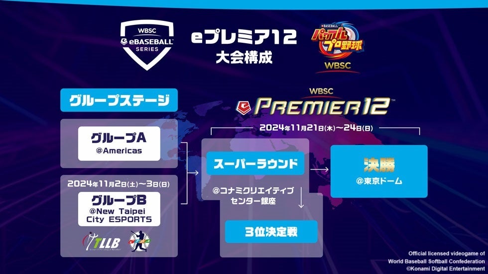 WBSC公式野球ゲーム『WBSC eBASEBALL™パワフルプロ野球』を競技タイトルとし、11月下旬に東京ドームで開催される予定です。