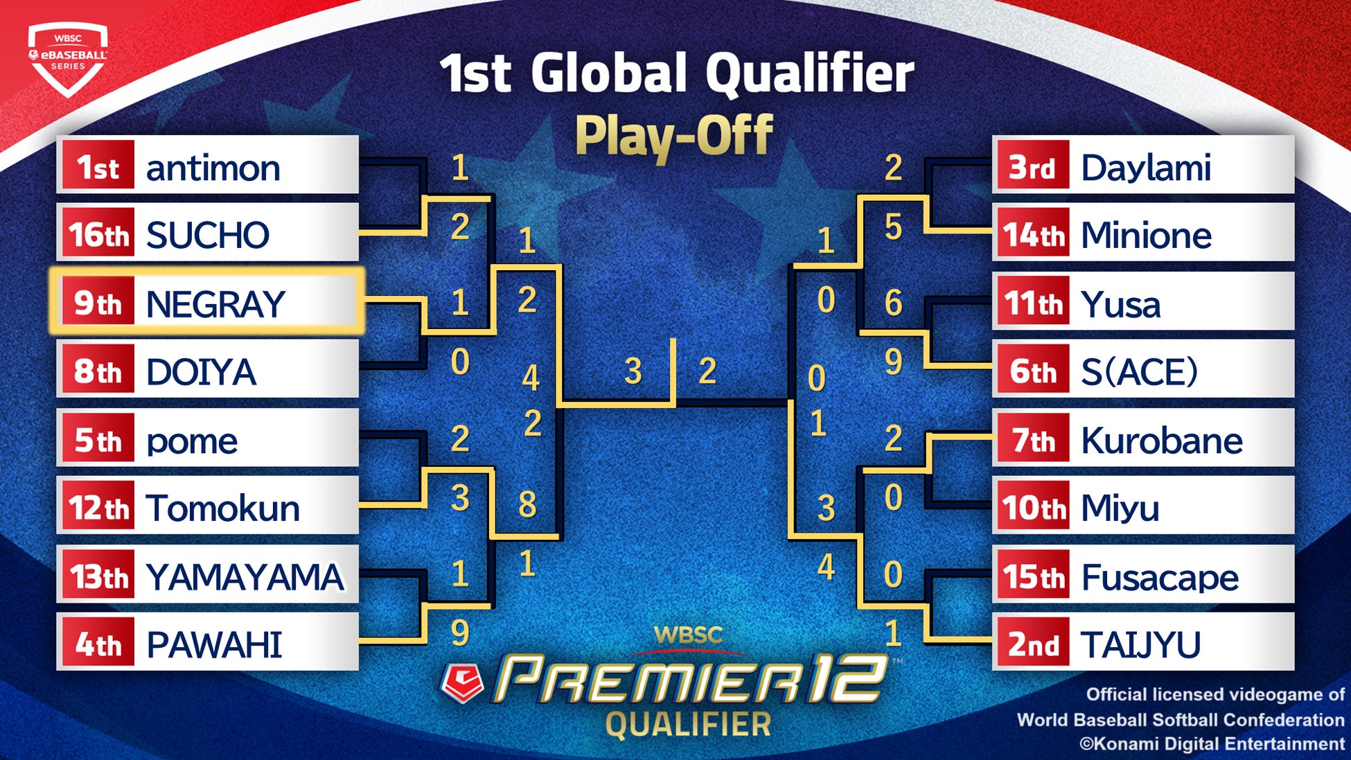 6月22日に行われた「eプレミア12 1st グローバル予選」のプレイオフでは、ネグレイ選手が見事優勝し、「eプレミア12」の出場権を獲得しました。