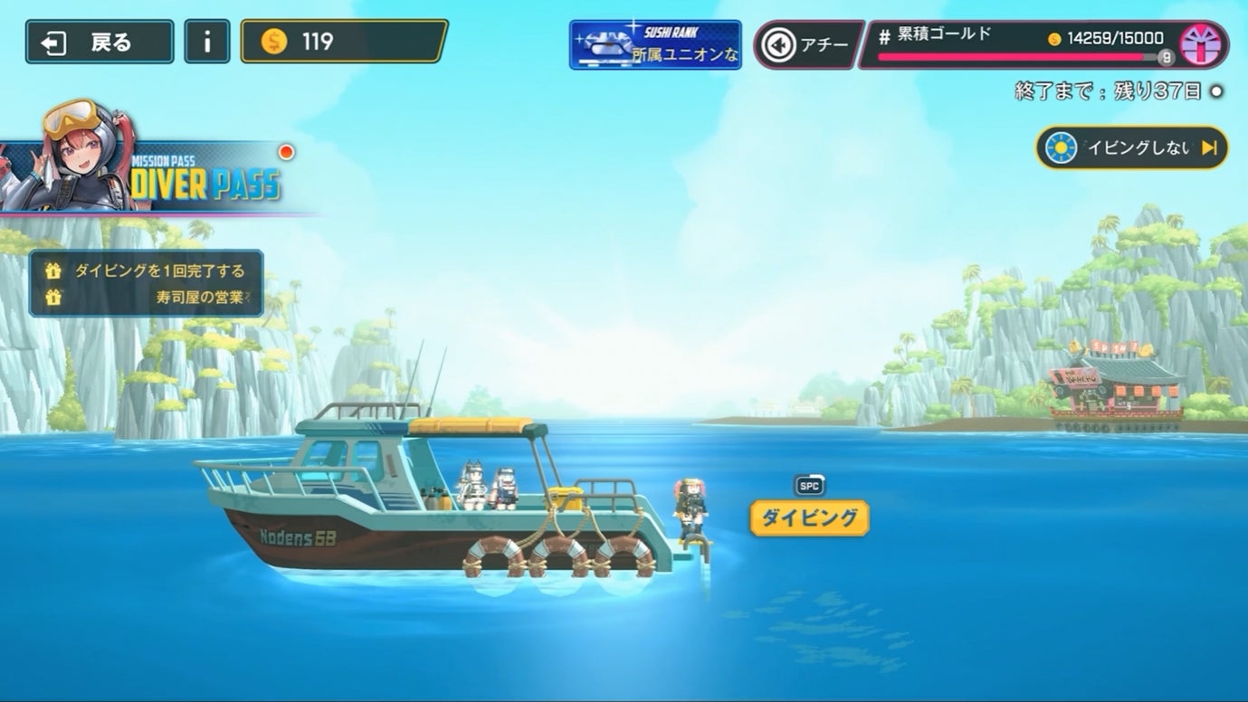 コラボゲームでは、「ヘルム」、「マスト」、「アンカー」が潜水服姿で登場し、海洋探険や寿司屋経営を体験できます。