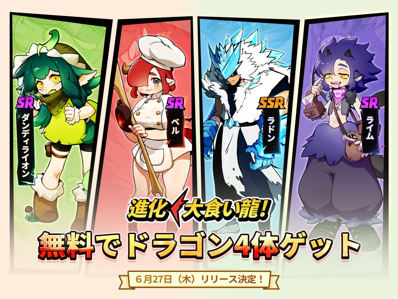 全世界DL数1,000万突破!新感覚ドラゴン娘育成飲込み進化RPG『進化! 大食い龍!』がいよいよ本日6月27日(木)に配信開始しました!