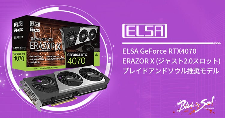 エヌ・シー・ジャパン株式会社は、PC向けオンラインゲーム『ブレイドアンドソウル』の推奨モデル「ELSA GeForce RTX4070 ERAZOR X(ジャスト2.0スロット)」の発売を記念してキャンペーンを開催することを発表しました。