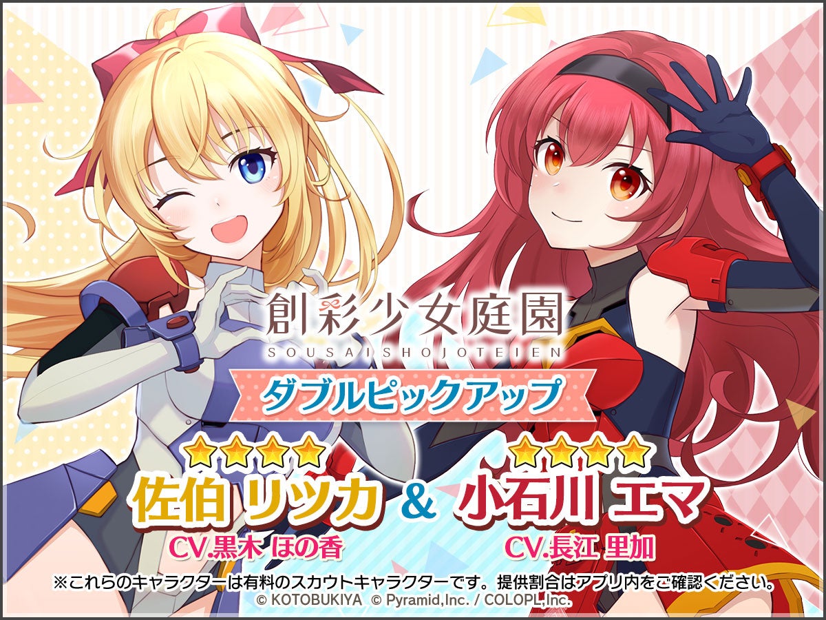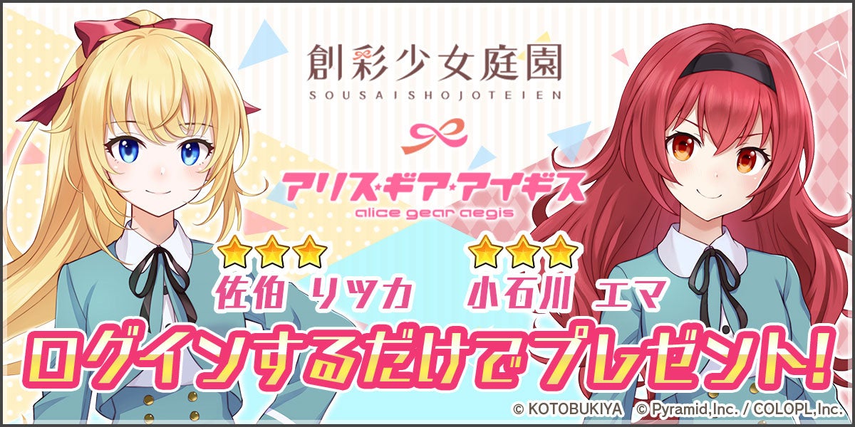 さらに、ログインボーナスとして「佐伯 リツカ」と「小石川 エマ」の★3キャラクターがプレゼントされます。