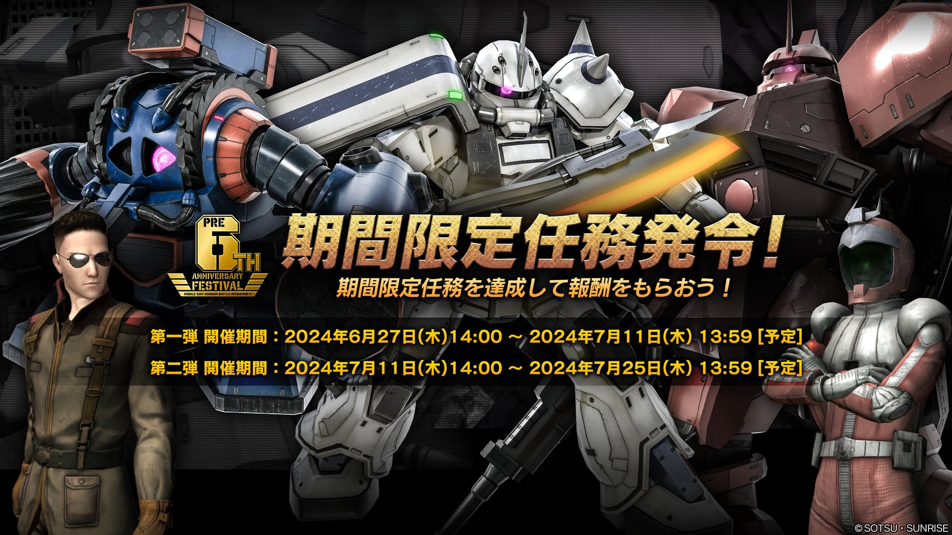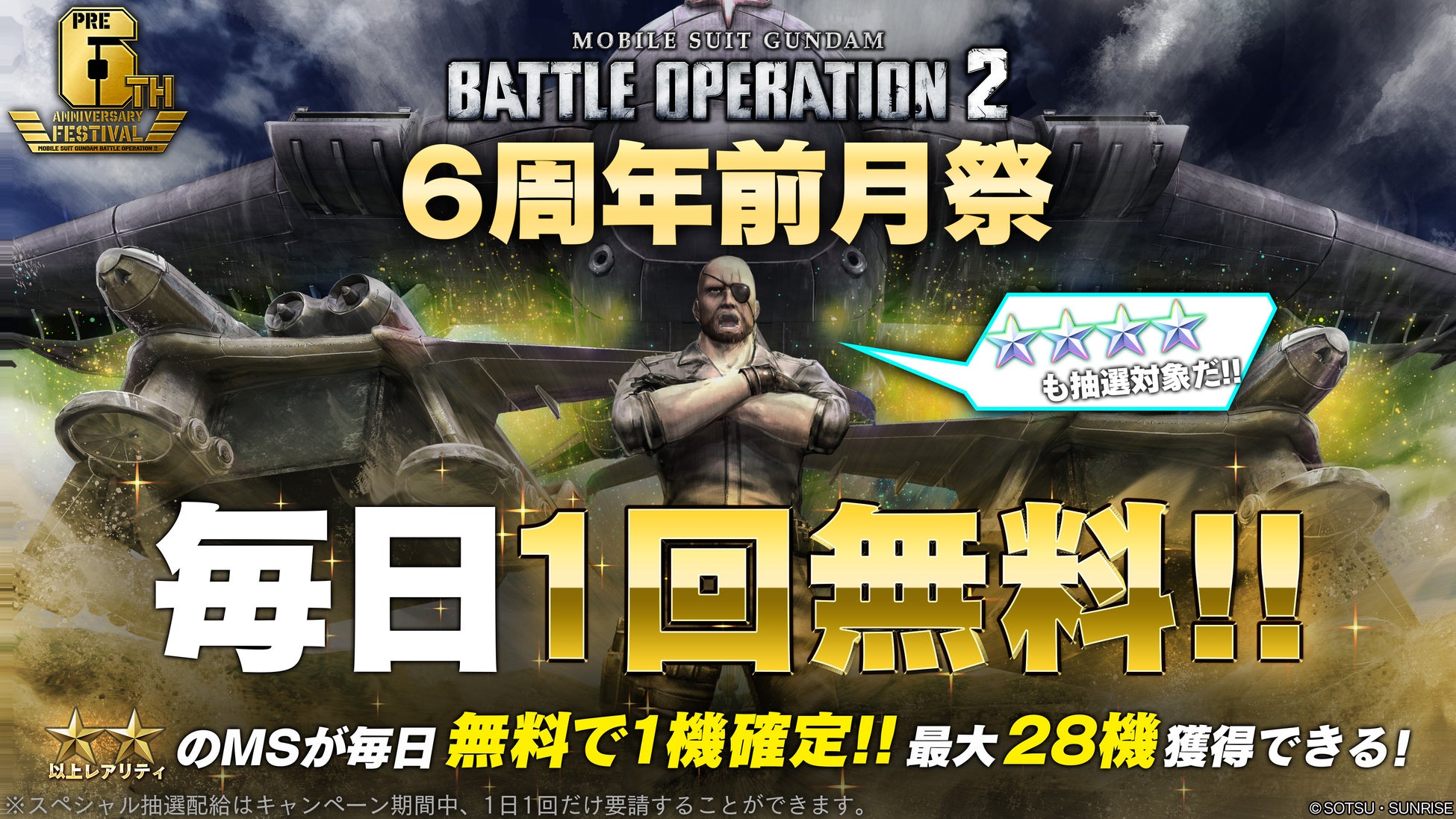 - PlayStation®5/PlayStation®4「機動戦士ガンダム バトルオペレーション2」では、6周年前月祭を開催中