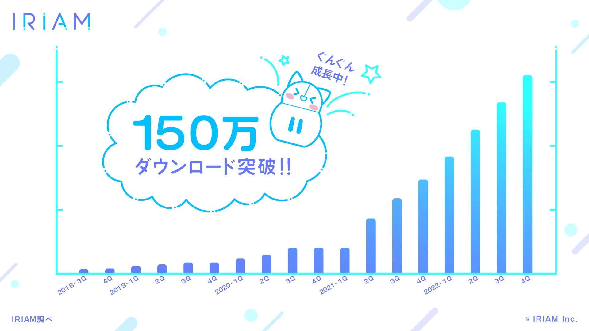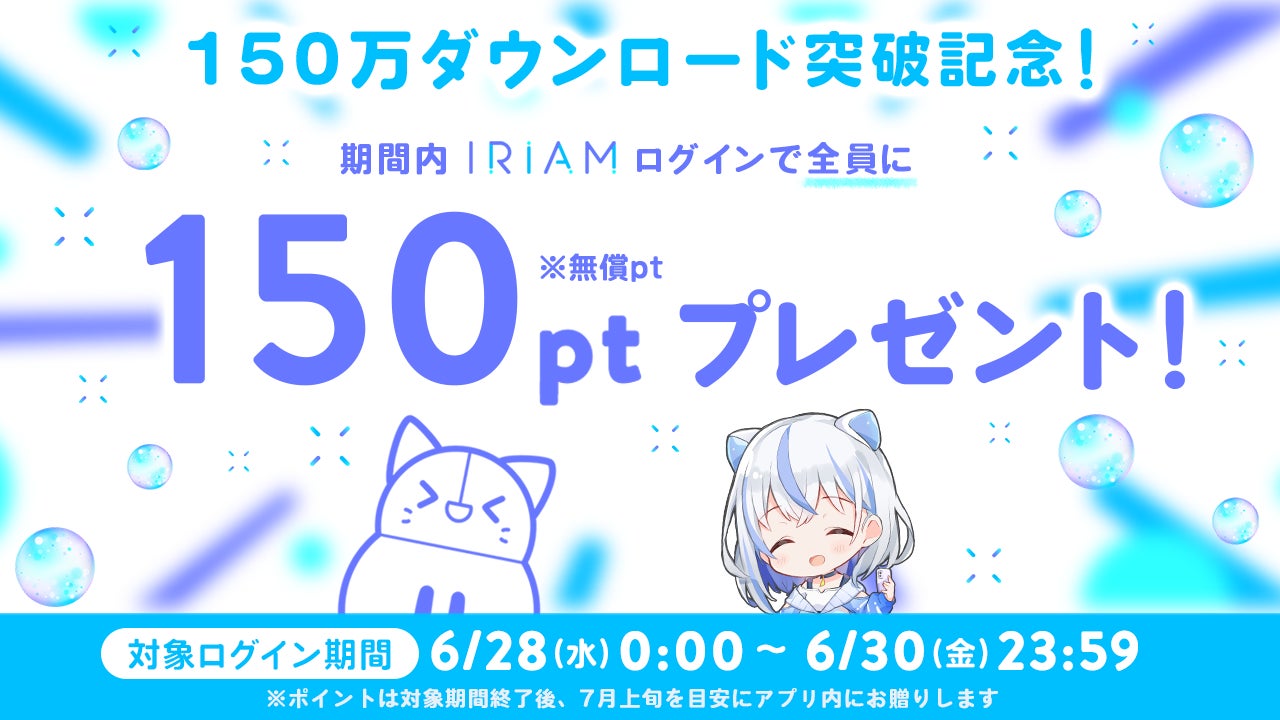 - 株式会社IRIAMが運営する新感覚Vtuberアプリ『IRIAM』が、累計15万人の配信者数と150万ダウンロードを突破しました。