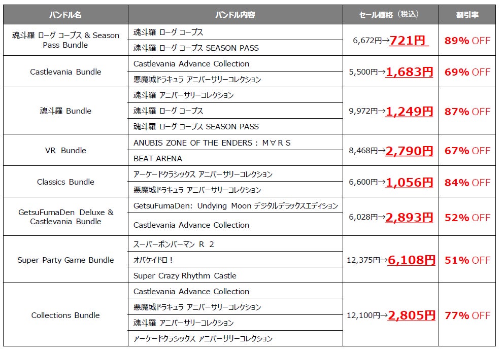 - KONAMIの「サマーセール」では、DL版対象タイトルが最大90%オフ。