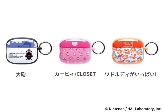 カービィがほおばっているデザインや、ワドルディの顔、ゲームのタイトルロゴなど、AirPods Proを可愛く彩ります。