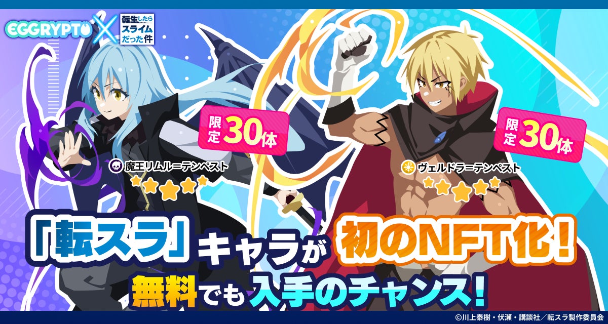 NFTゲーム「EGGRYPTO(エグリプト)」は、7月5日(金)より、大人気アニメ「転生したらスライムだった件」とのコラボイベントを開催します。