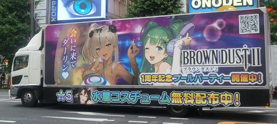 秋葉原では、キャラクターイラストを大きくペイントしたアドトラックが巡回しており、JR秋葉原駅構内ではデジタルサイネージ広告も展開されています。