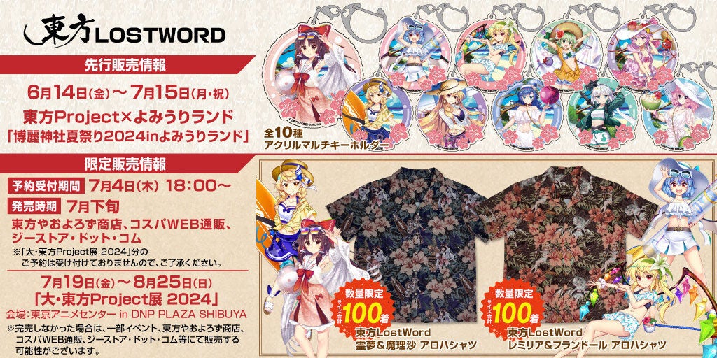 - 東方LostWord 霊夢&魔理沙 アロハシャツ、東方LostWord レミリア&フランドール アロハシャツ、東方LostWord アクリルマルチキーホルダー