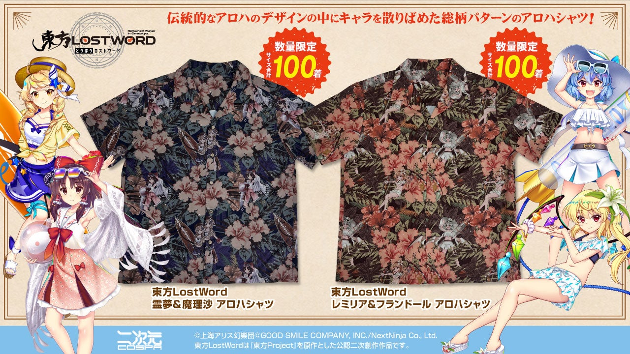 数量限定 100着『東方LostWord』霊夢&魔理沙、レミリア&フランドールの「アロハシャツ」が登場、7/4(木)18時~予約受付開始!イベント分先行販売も【株式会社コスパ】です。