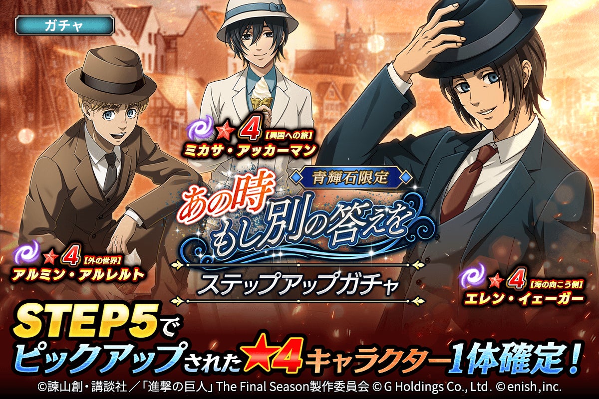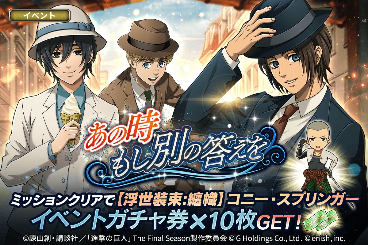 「進撃の巨人Brave Order」進撃ブレオダ「あの時、もし別の答えを」ガチャが、2024年6月28日から7月28日までの期間開催されます。