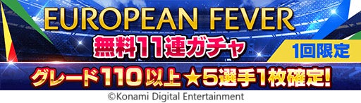 さらに、期間中1回だけ回せる「EUROPEAN FEVER無料11連ガチャ」では「グレード110以上★5選手」が1枚確定で手に入ります。