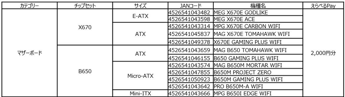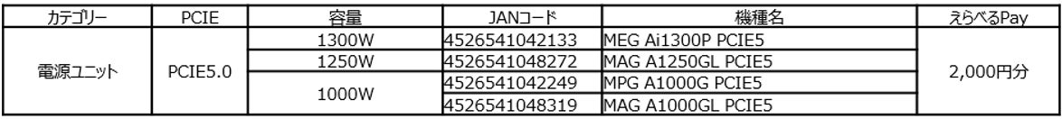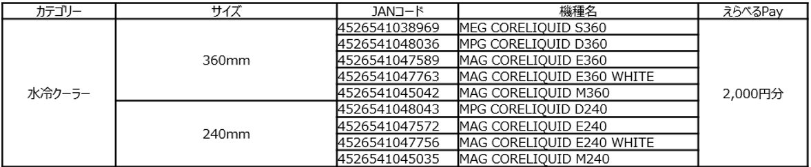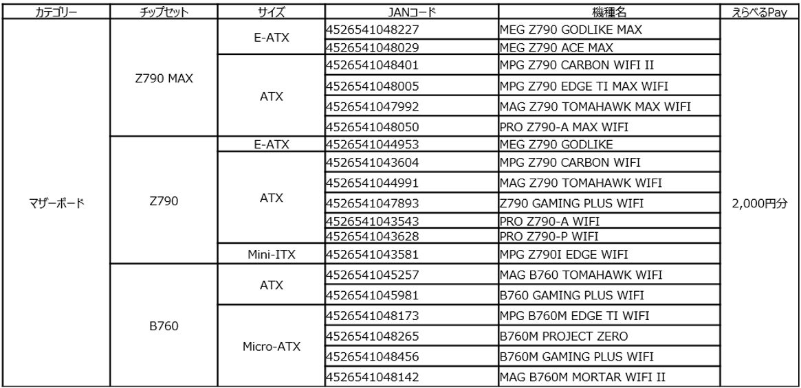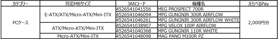 9月30日(月)まで、MSIのマザーボード、電源ユニット、水冷クーラー、PCケースを購入してレビュー投稿すると、えらべるPay 2,000円分がもらえます。