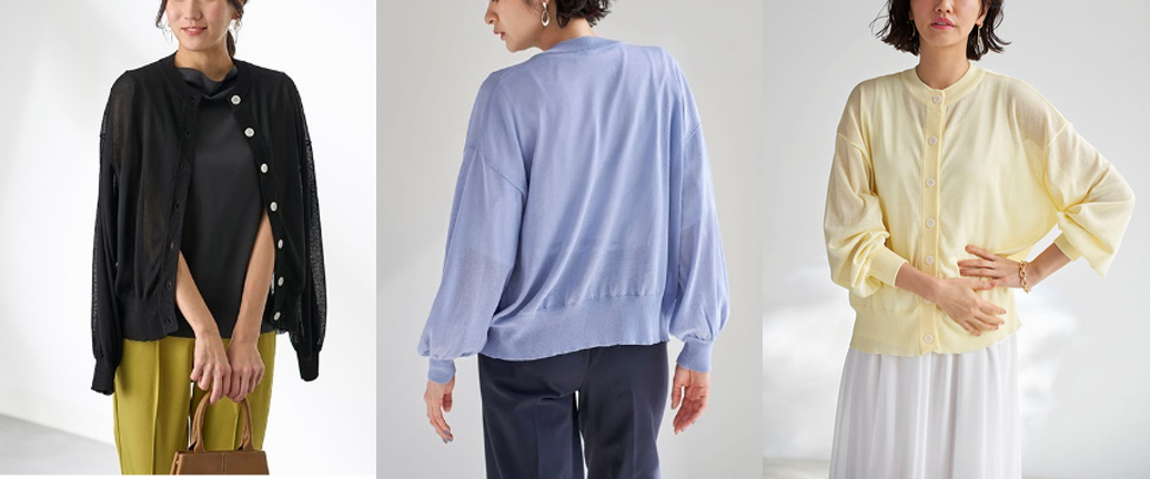 - 涼しげな素材を使用したカーディガンとパーカーをご紹介