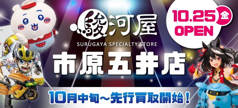 10月25日(金)、千葉県市原市に「駿河屋 市原五井店」がオープンします!フィギュア、プラモデル、アニメ雑貨など、新品&中古合わせて30万点以上の商品が揃う、地域最大級の規模を誇るお店です。