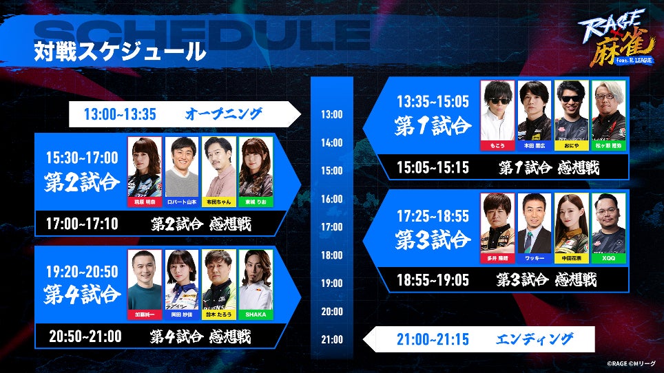 RAGE麻雀 feat.Mリーグ:7月13日 有観客イベント開催!タイムスケジュール&対戦順公開!