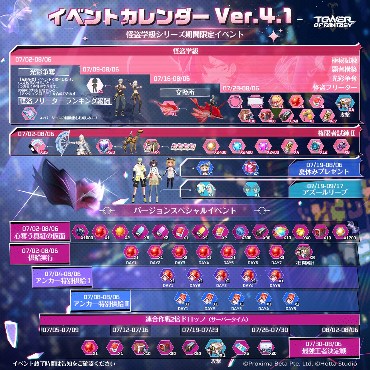 また、アップデートでは、極秘試練、覇者構築、光彩争奪、怪盗フリーター、アズールリープなど、多数のバージョンテーマイベントも実装されます。