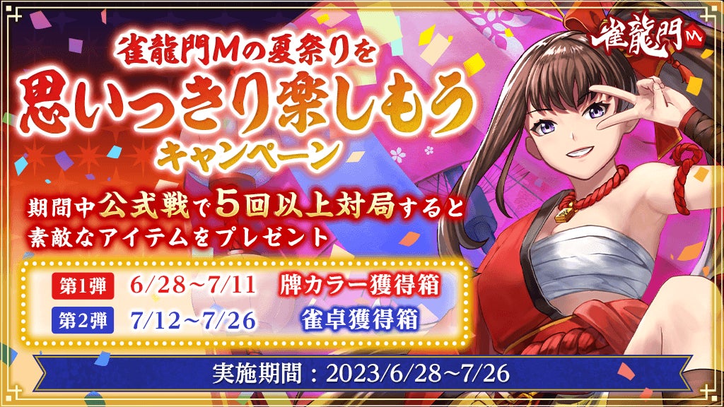 - スマートフォン向けの3D麻雀アプリ『雀龍門M』で、夏祭りイベントが開催されます。