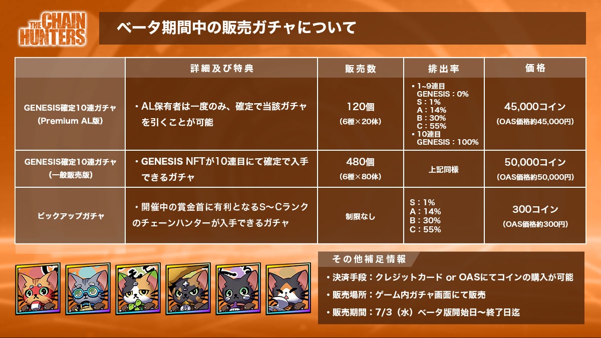 - 『THE CHAIN HUNTERS』の第1回GENESISセールとオープンβテストが本日15時より開始